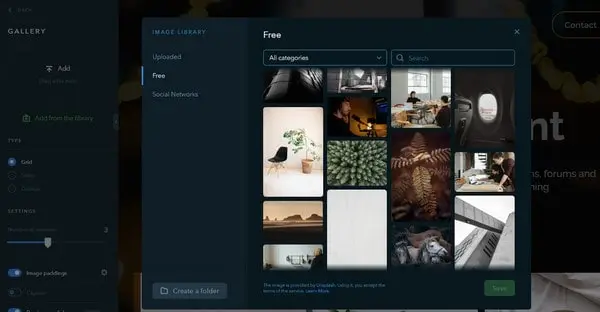 The media library in uKit might start you off with just a handful of free images, but for those seeking a broader palette, there’s access to a vast collection of stock photography from DepositPhotos. Whether you prefer your images in a grid, slider, or collage format, uKit has you covered. Plus, you’re more than welcome to upload your own photos directly from your computer or import some gems from your social media profiles.
