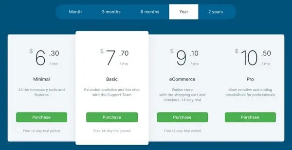 - Basic – The plan with extended statistics and a live chat support option is priced at $7.70 per month.