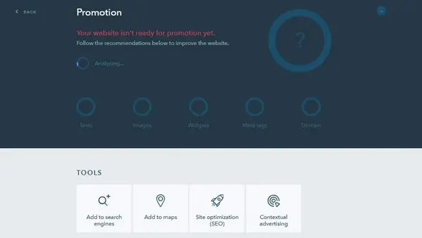 uKit offers blogging and SEO tools, which are, yet not extraordinary. The available features are all essential and can help you optimize your site or web store for search engines. You can add a sitemap of the site, meta tags, and several other options that will increase your brand visibility for search engines. Furthermore, some features will show you how ready your site is for promotion. You will be promoted if your website lacks meta tags, widgets, meta descriptions, text information, and other crucial aspects.