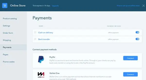 Note that all these online store tools are available only if you upgrade your account to eCommerce.